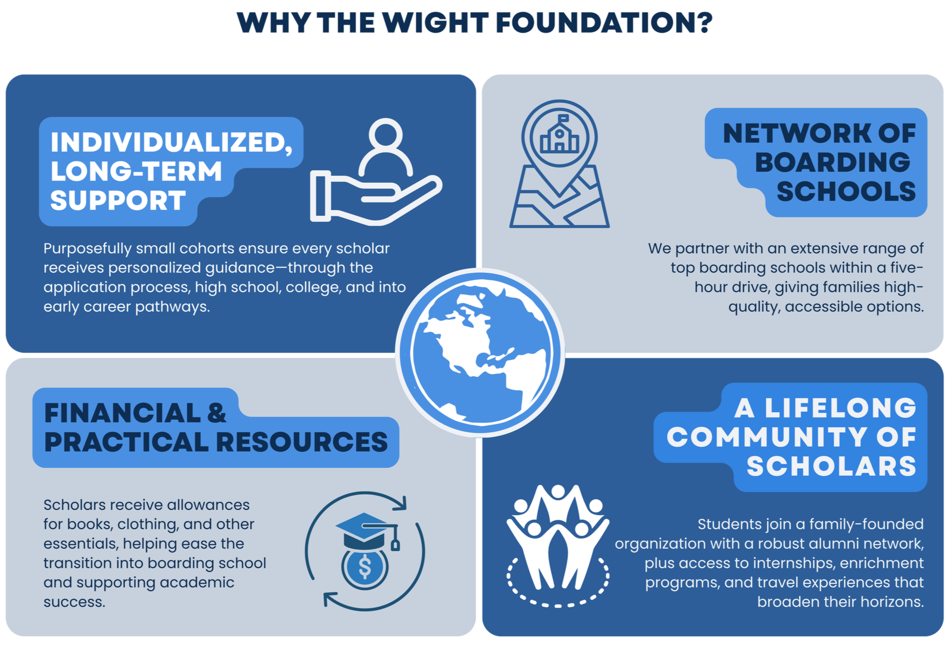 Our application process is comprehensive, and each student who becomes a Wight Foundation Scholar receives dedicated support throughout and beyond their high school years.